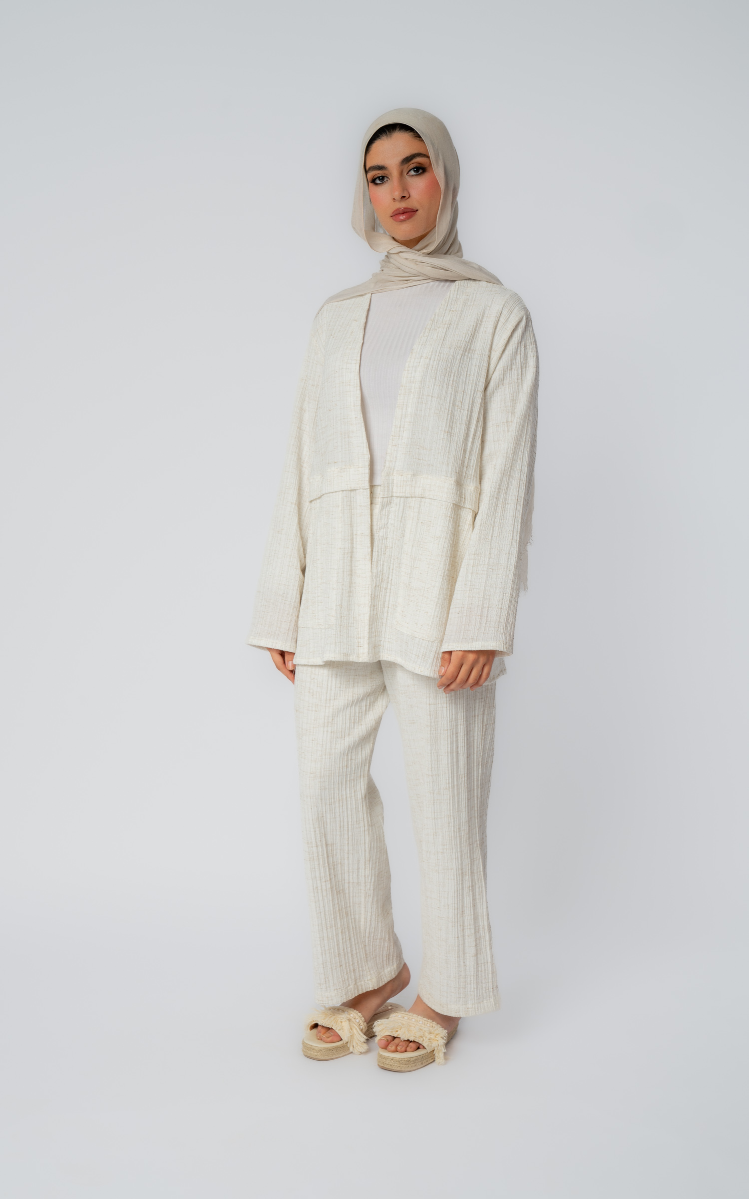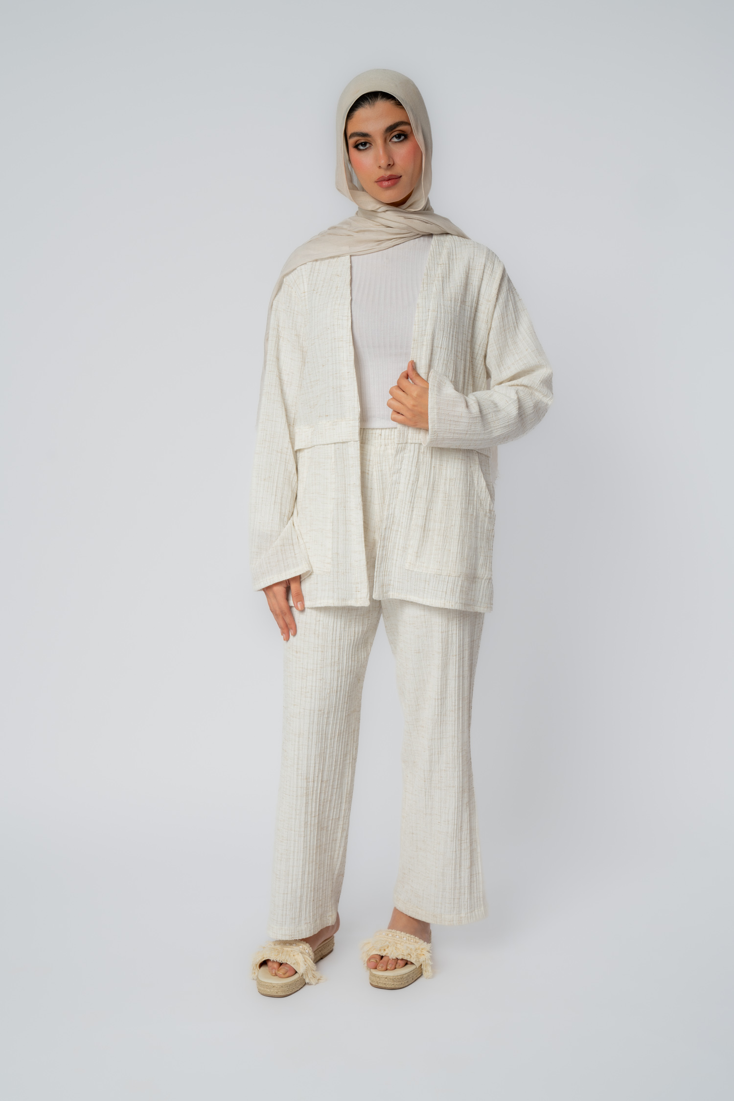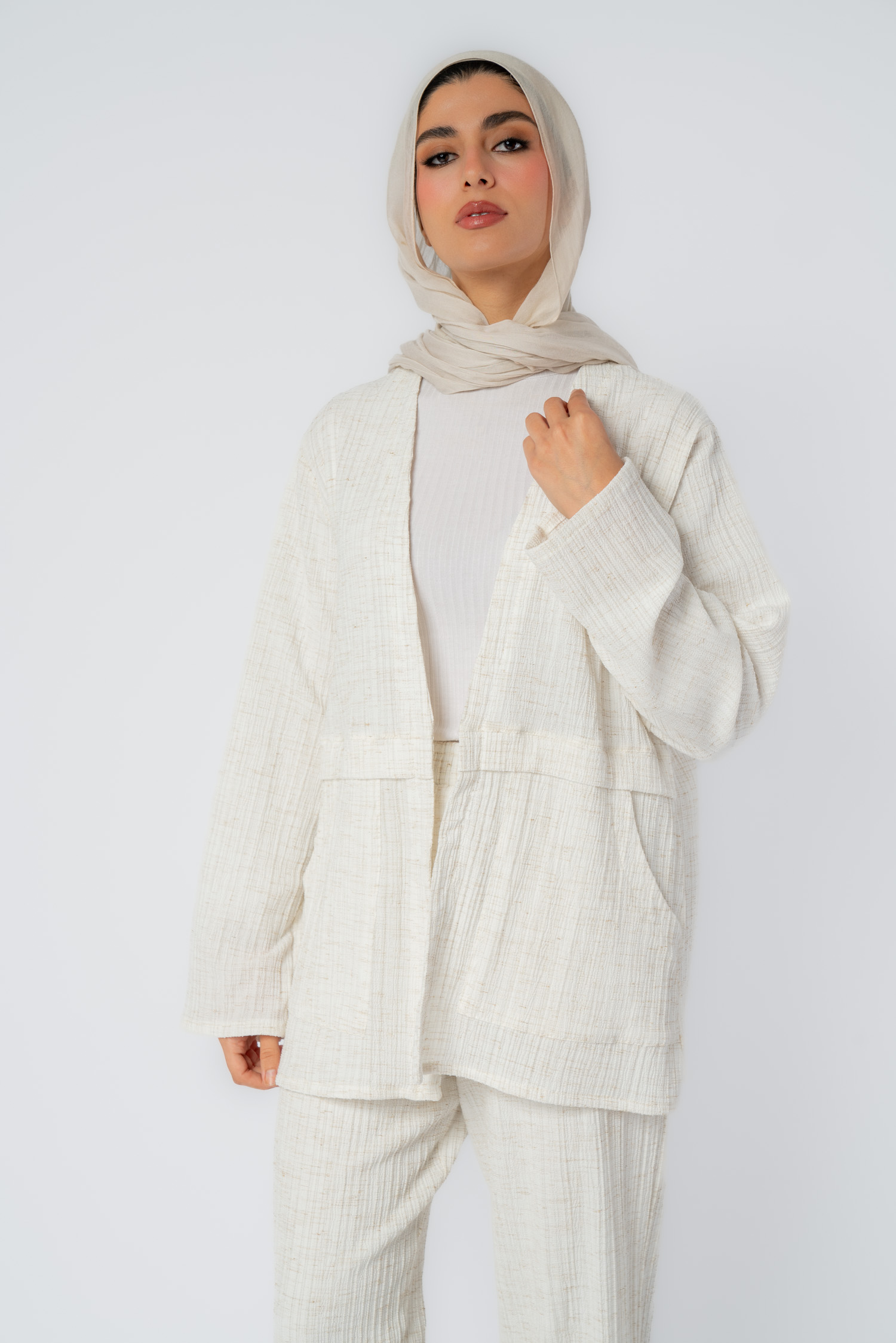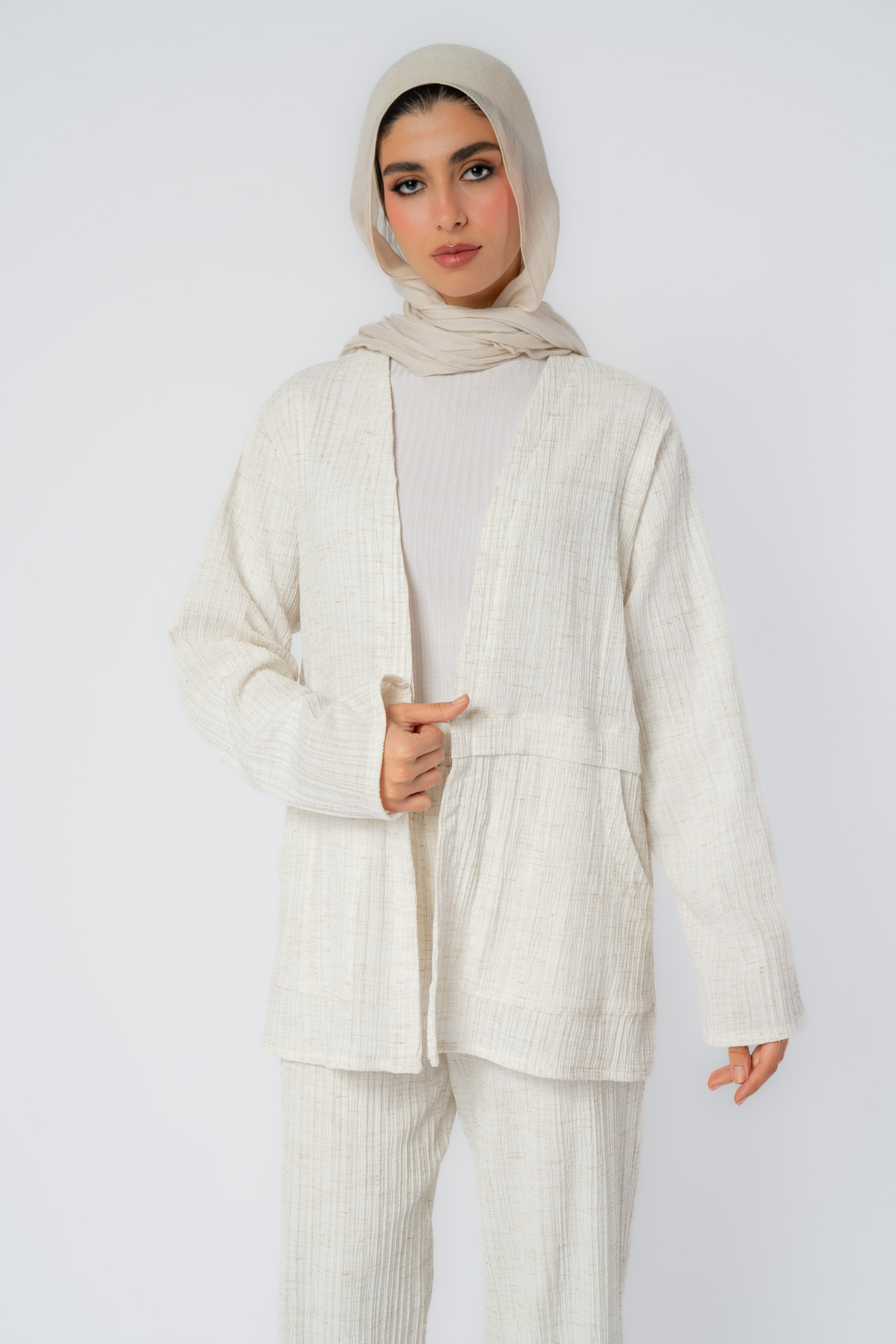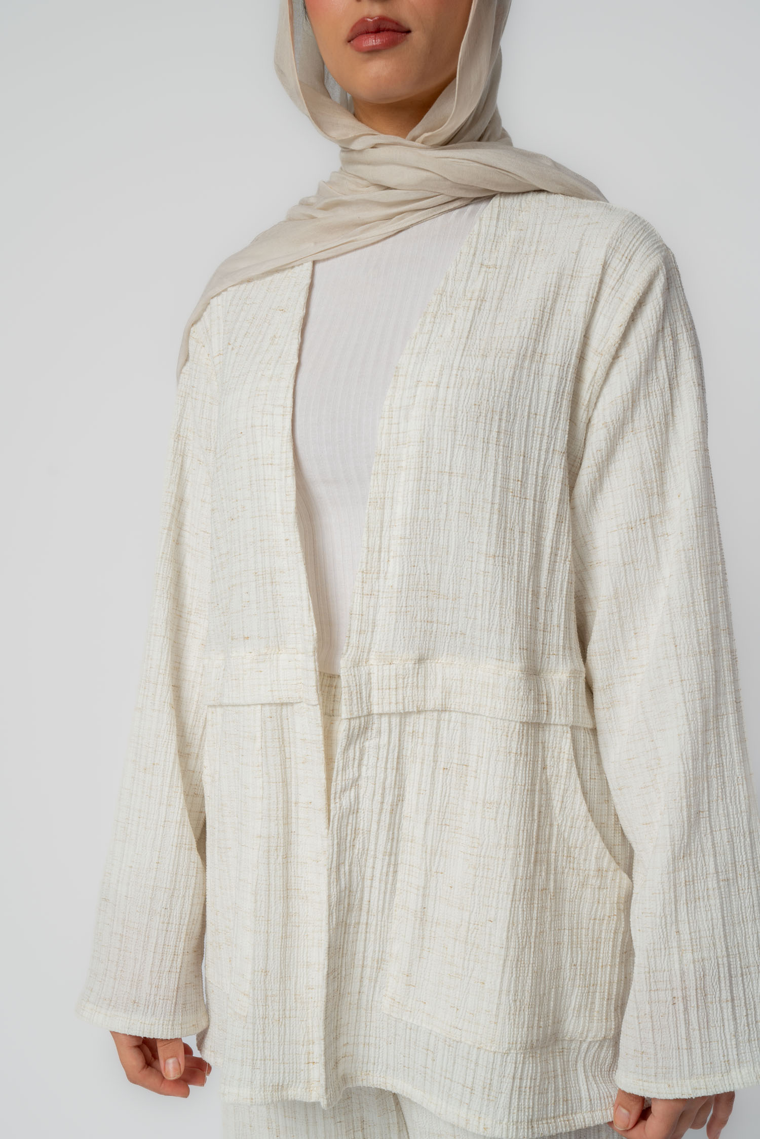 جاكيت كتان مفتوح مع جيبين
