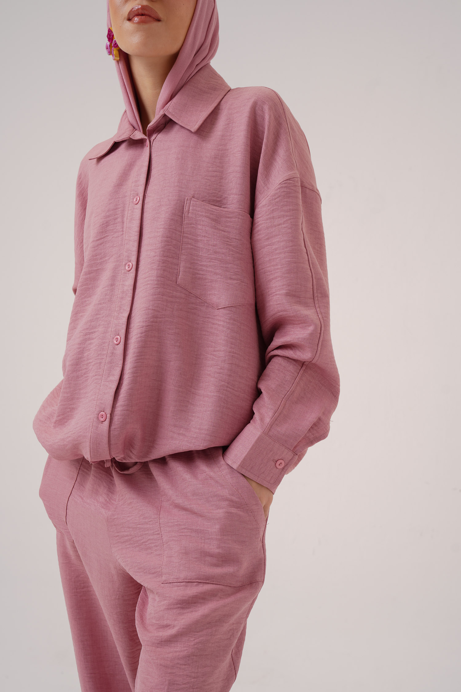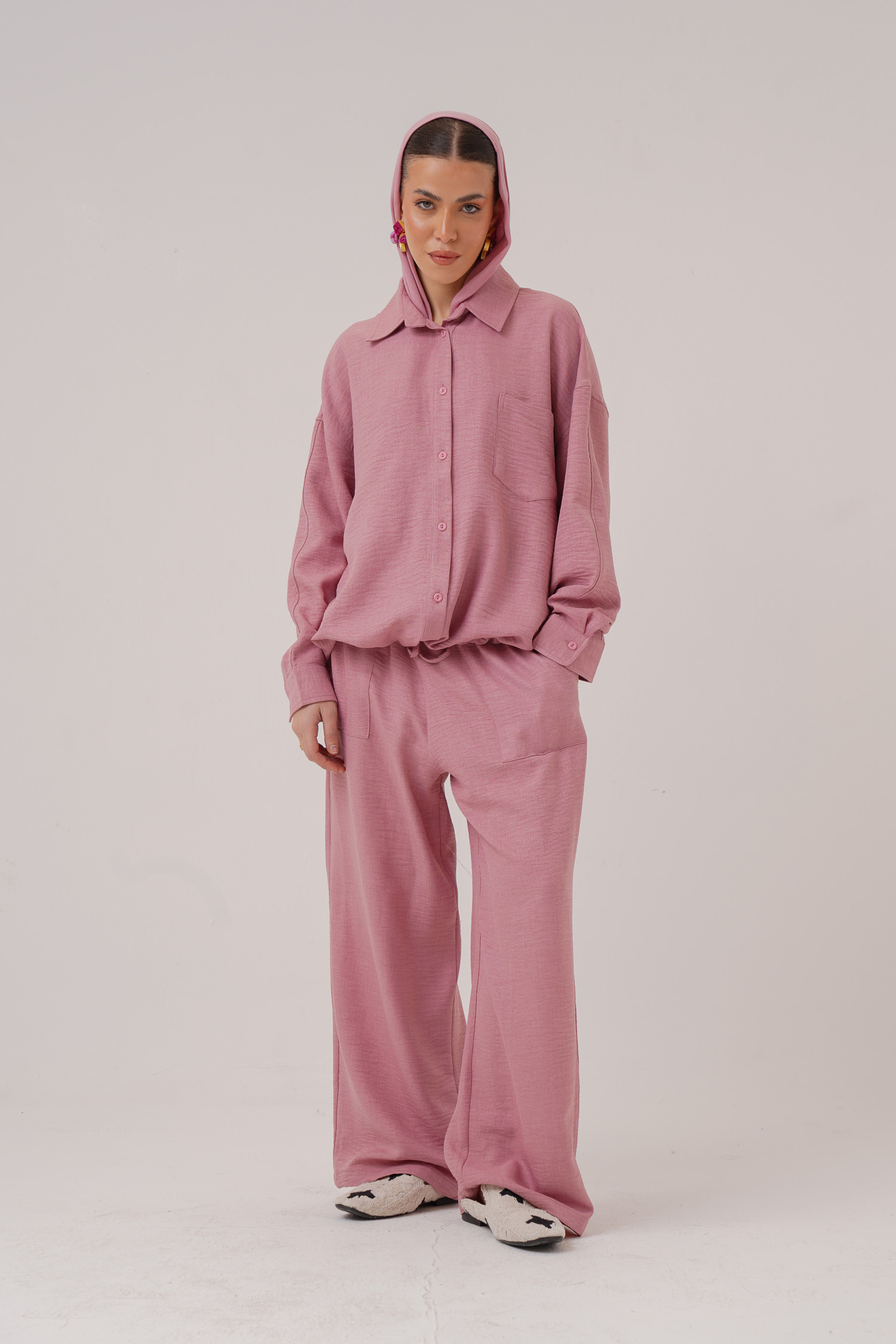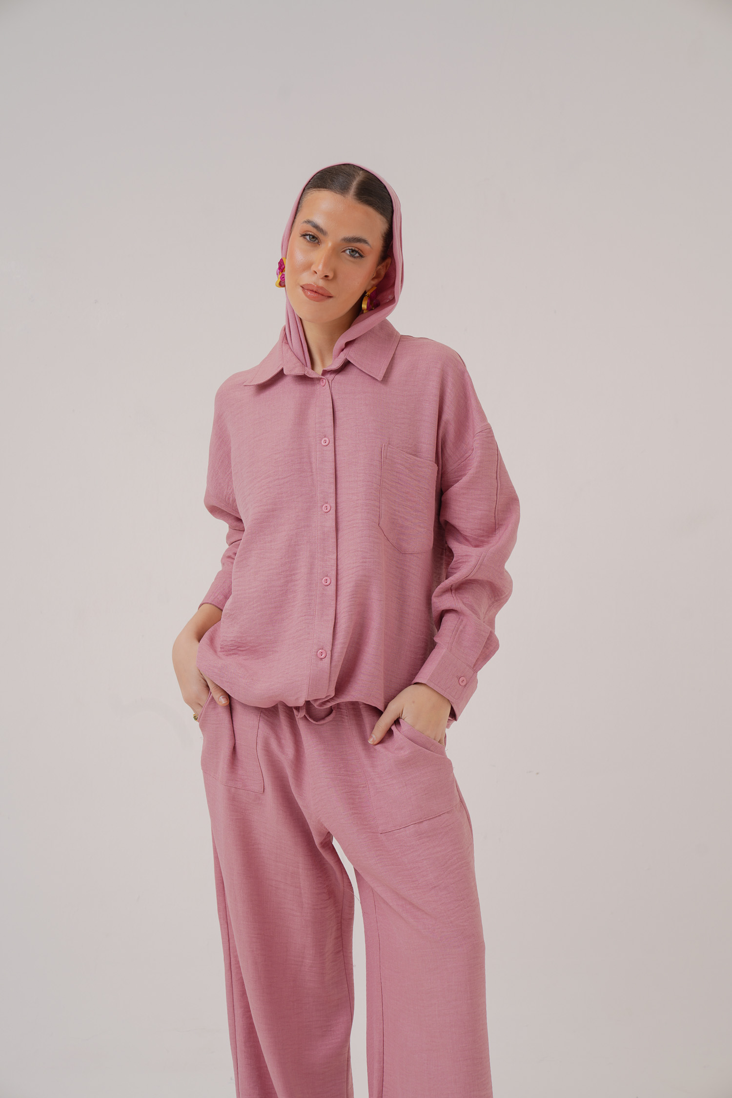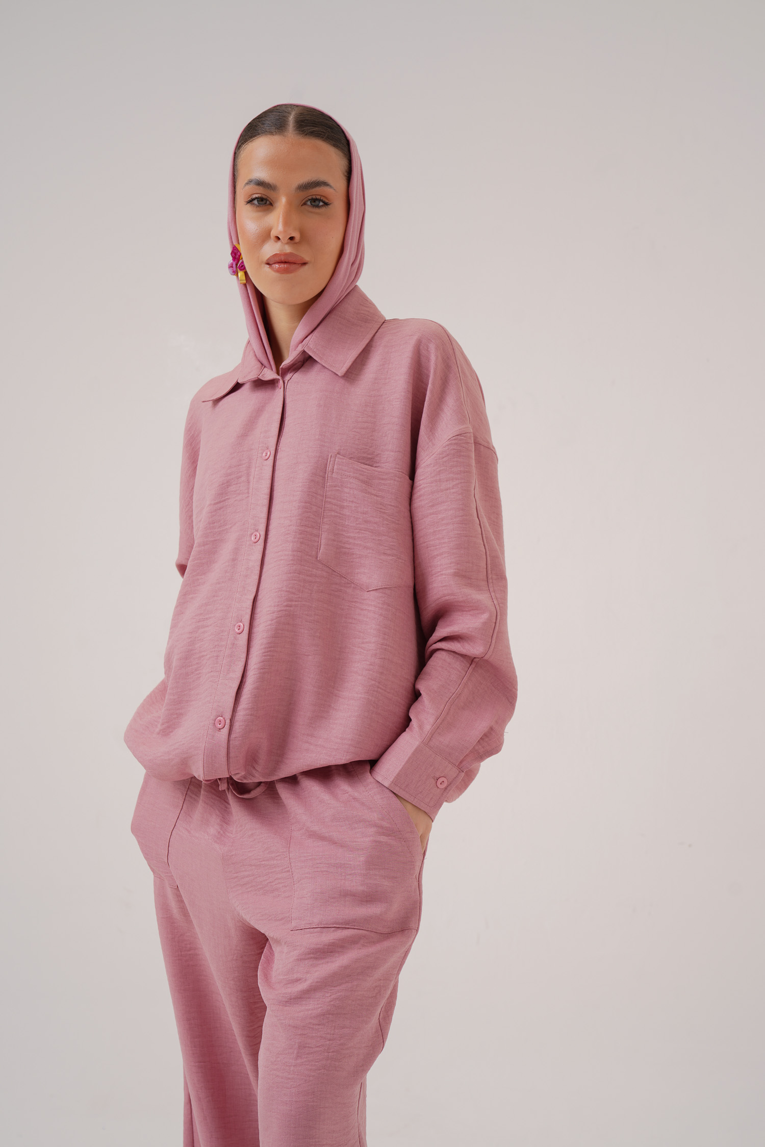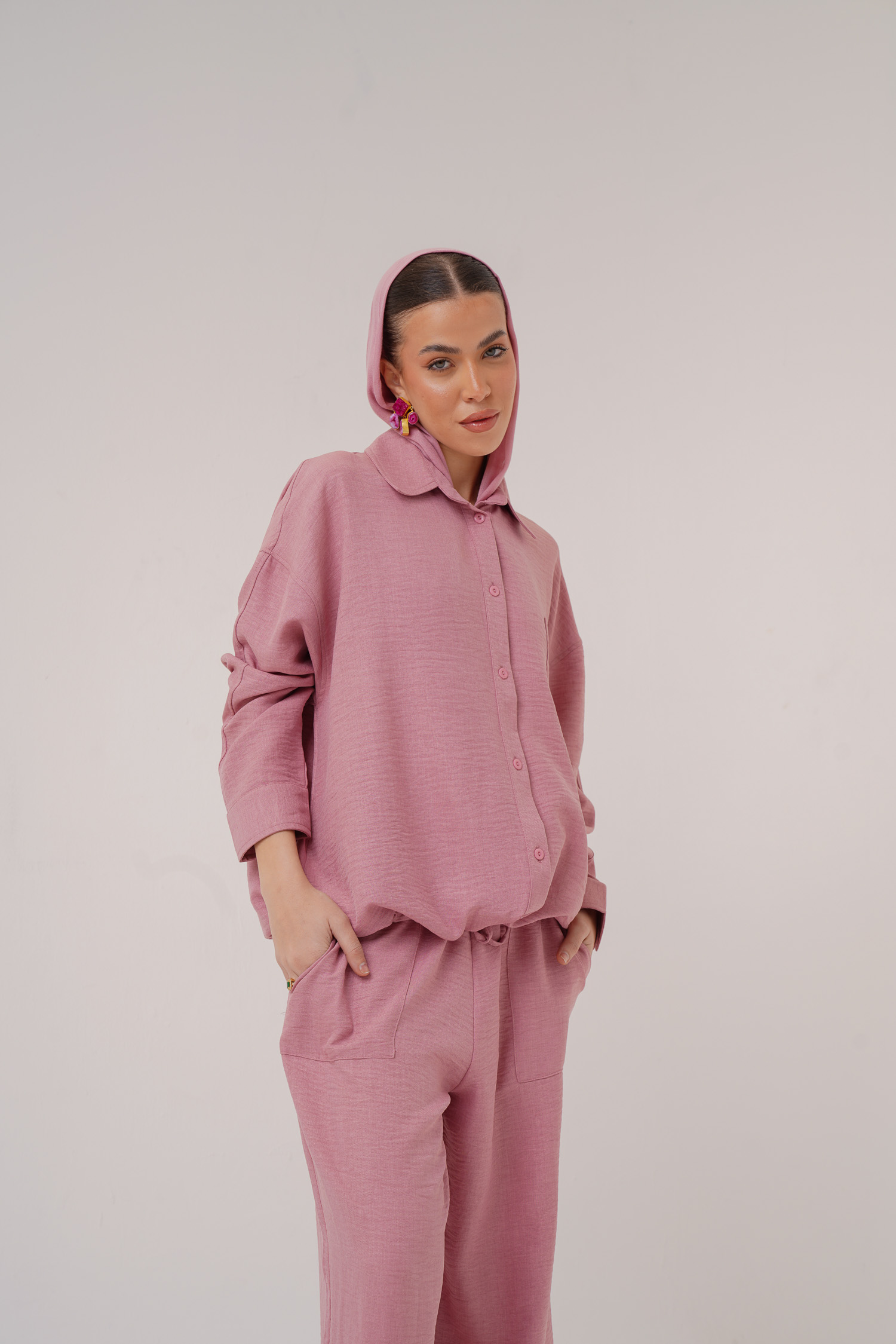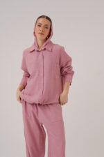 Linen hoodie 2 button pockets