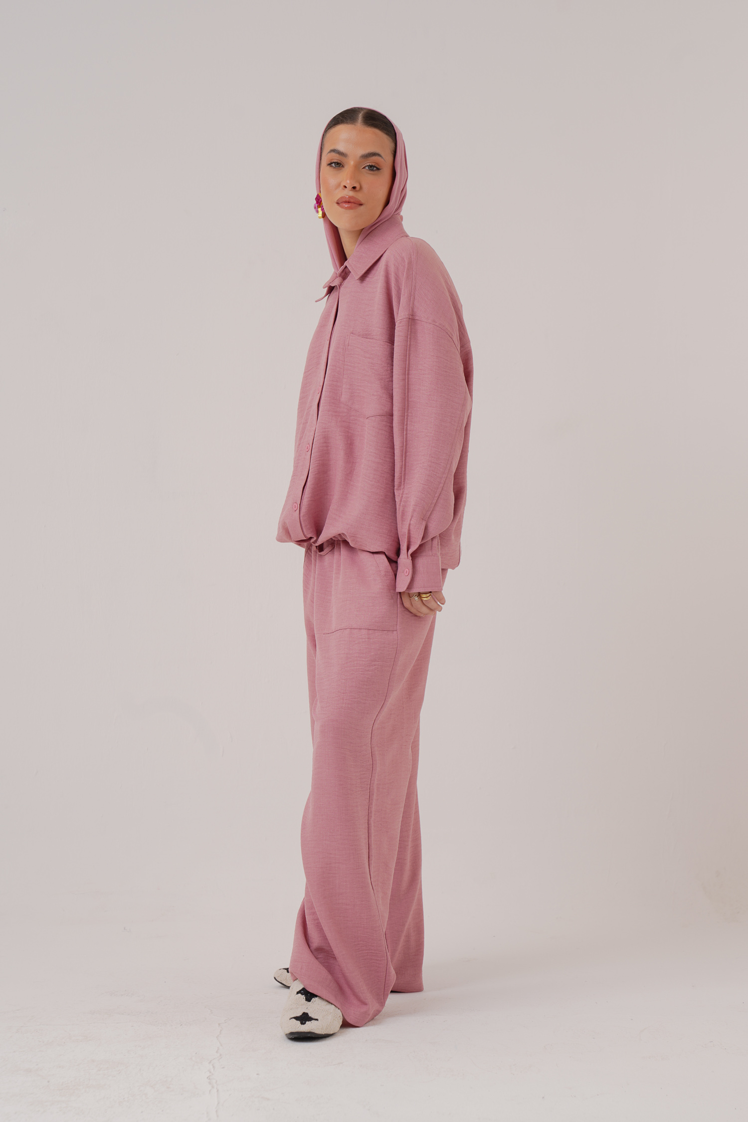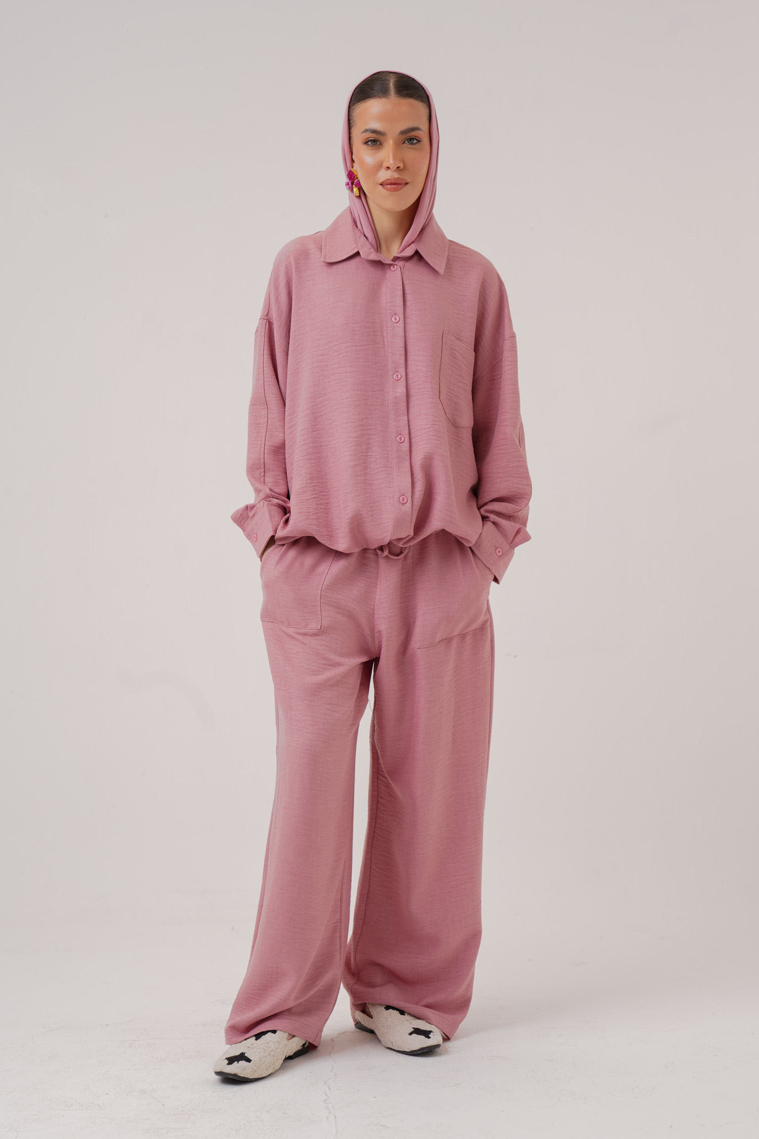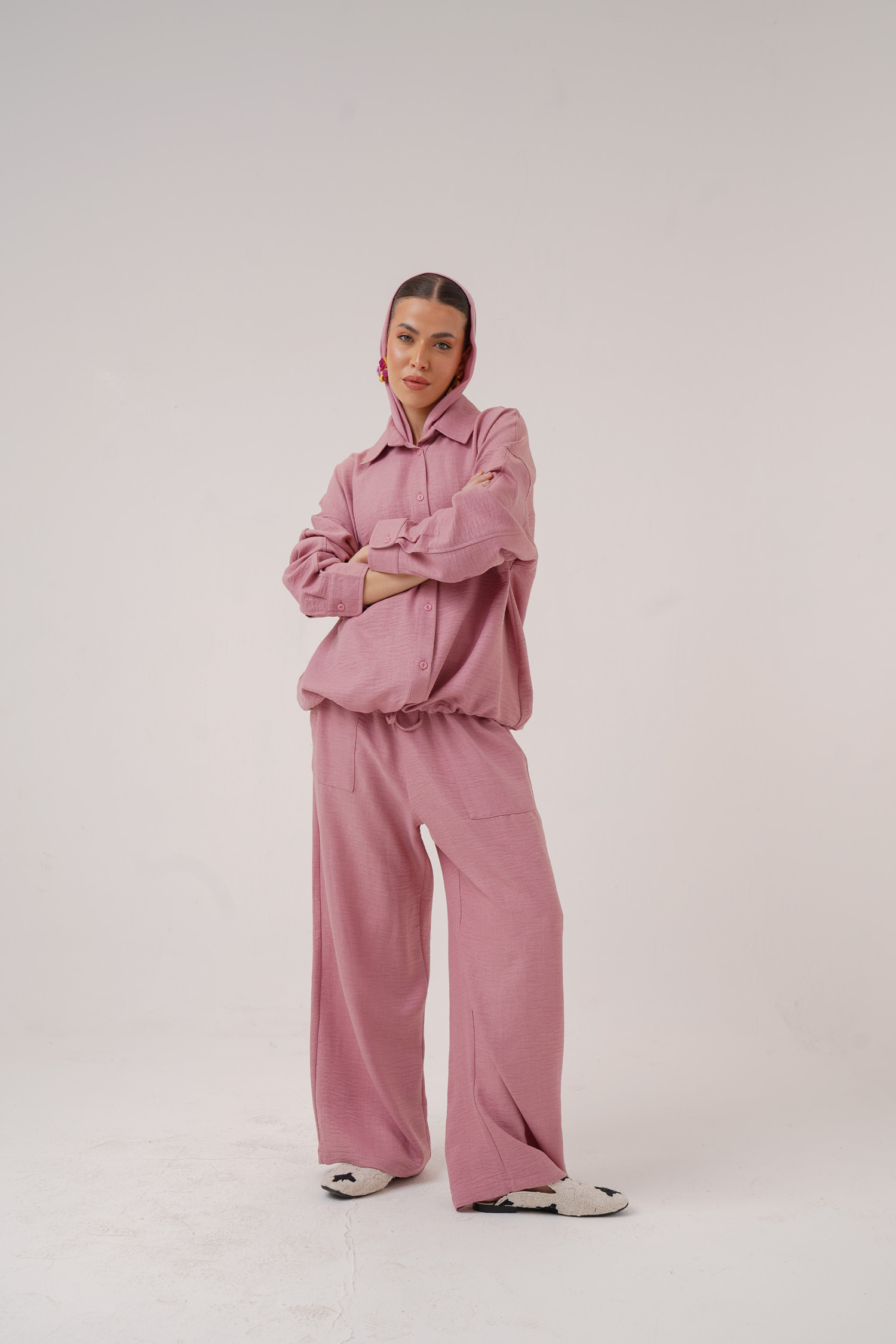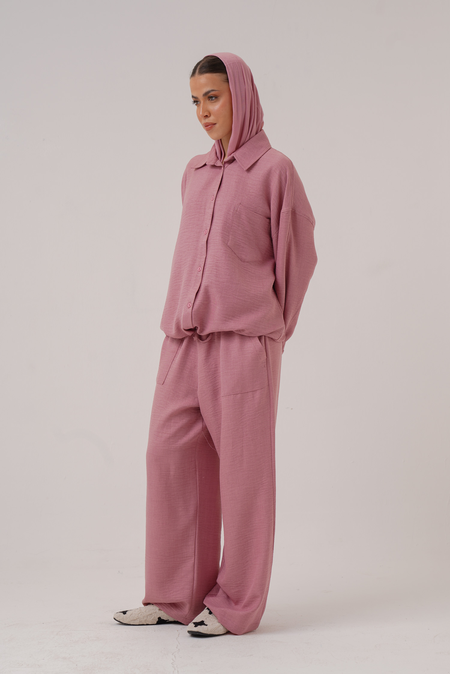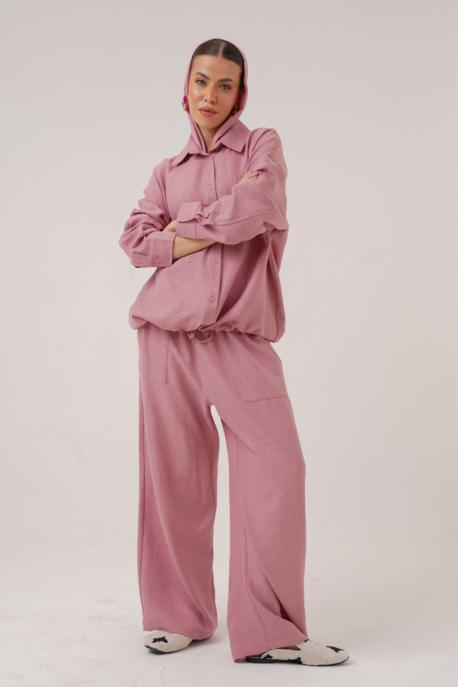 Linen hoodie 2 button pockets