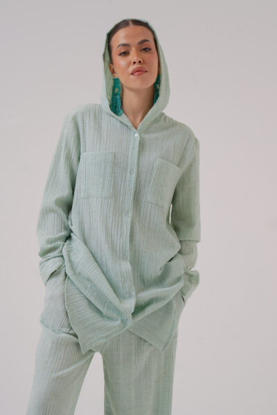 Linen Crochet Blouse with 2 Pockets, Hoodie
