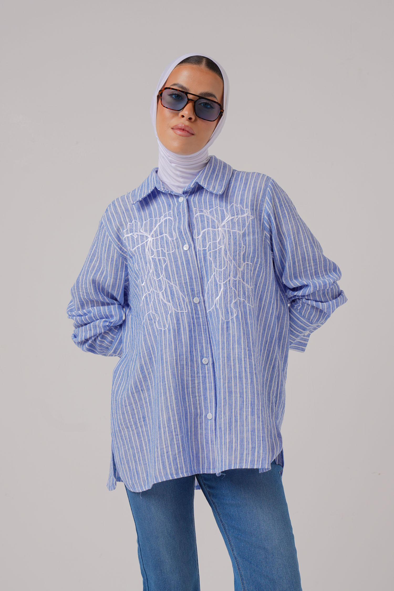 Be the first to review “Striped linen blouse with embroidery on the chest” Cancel reply