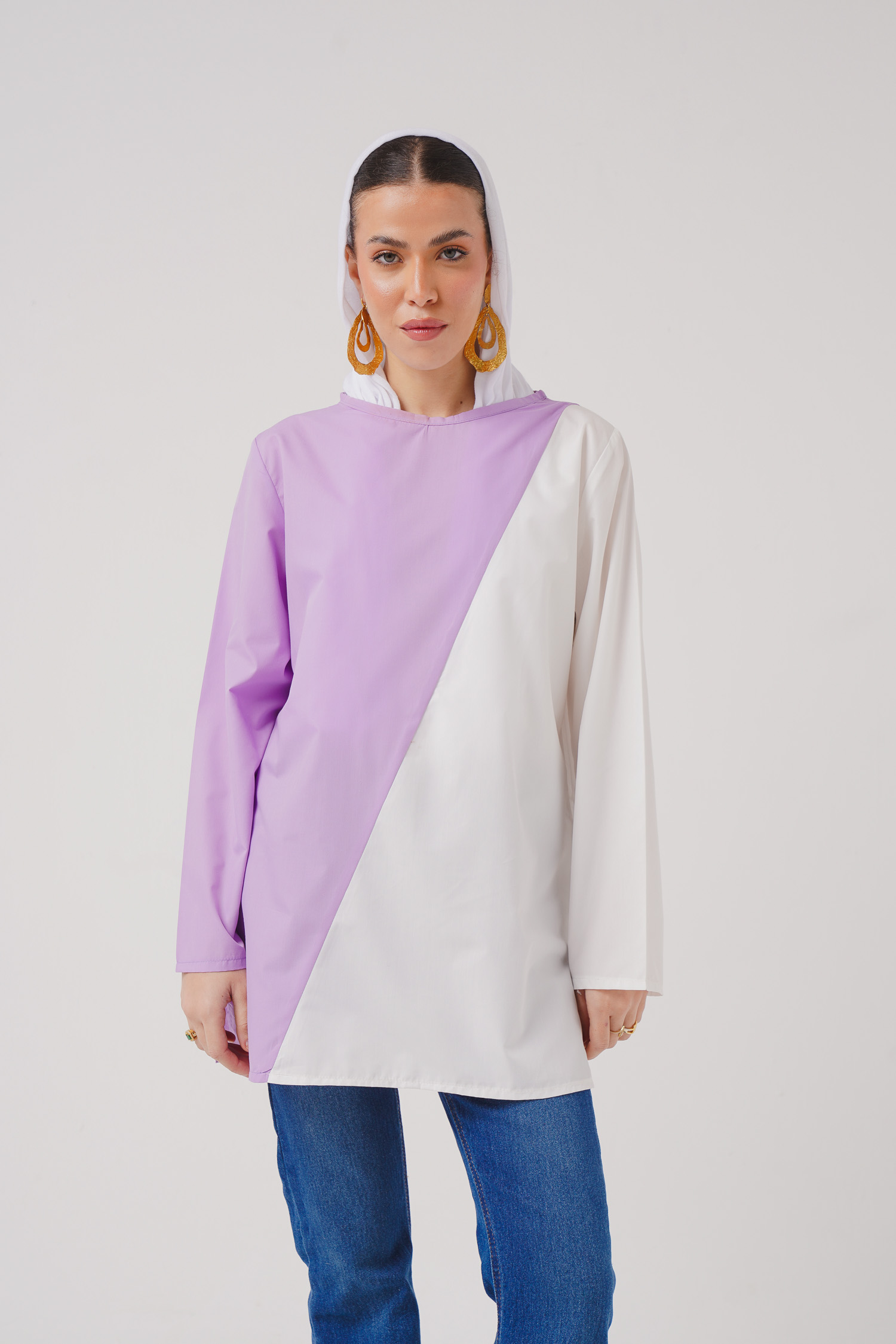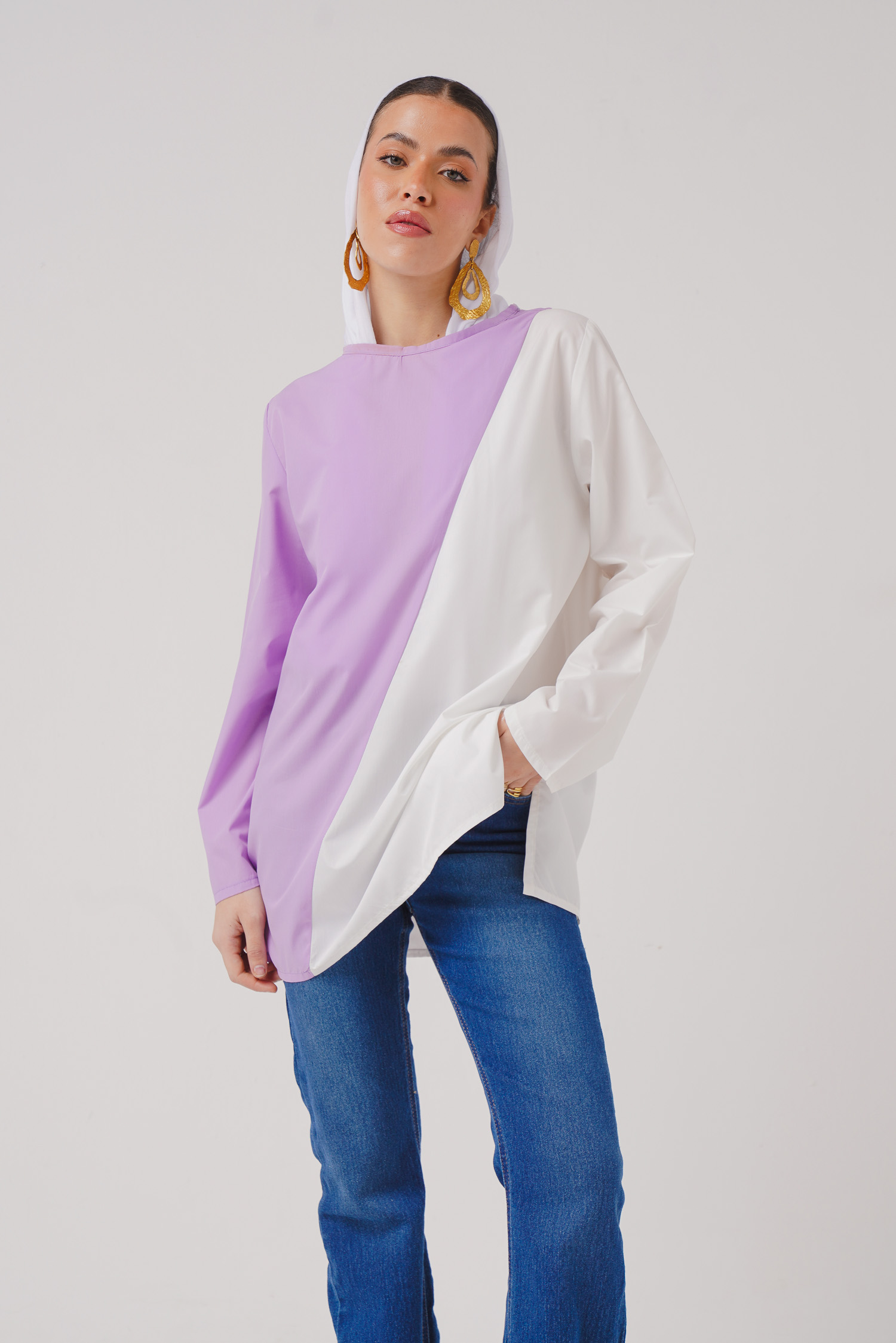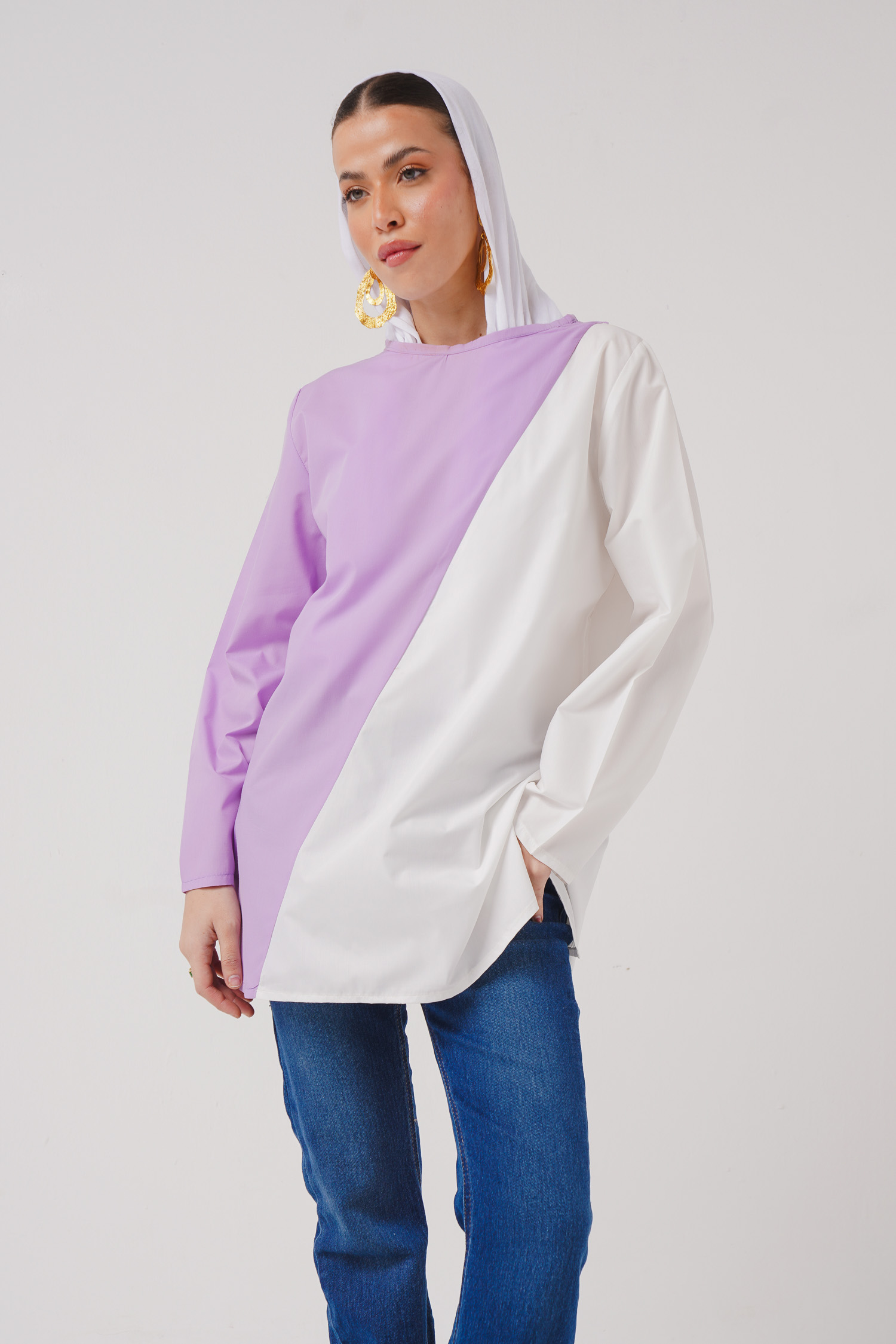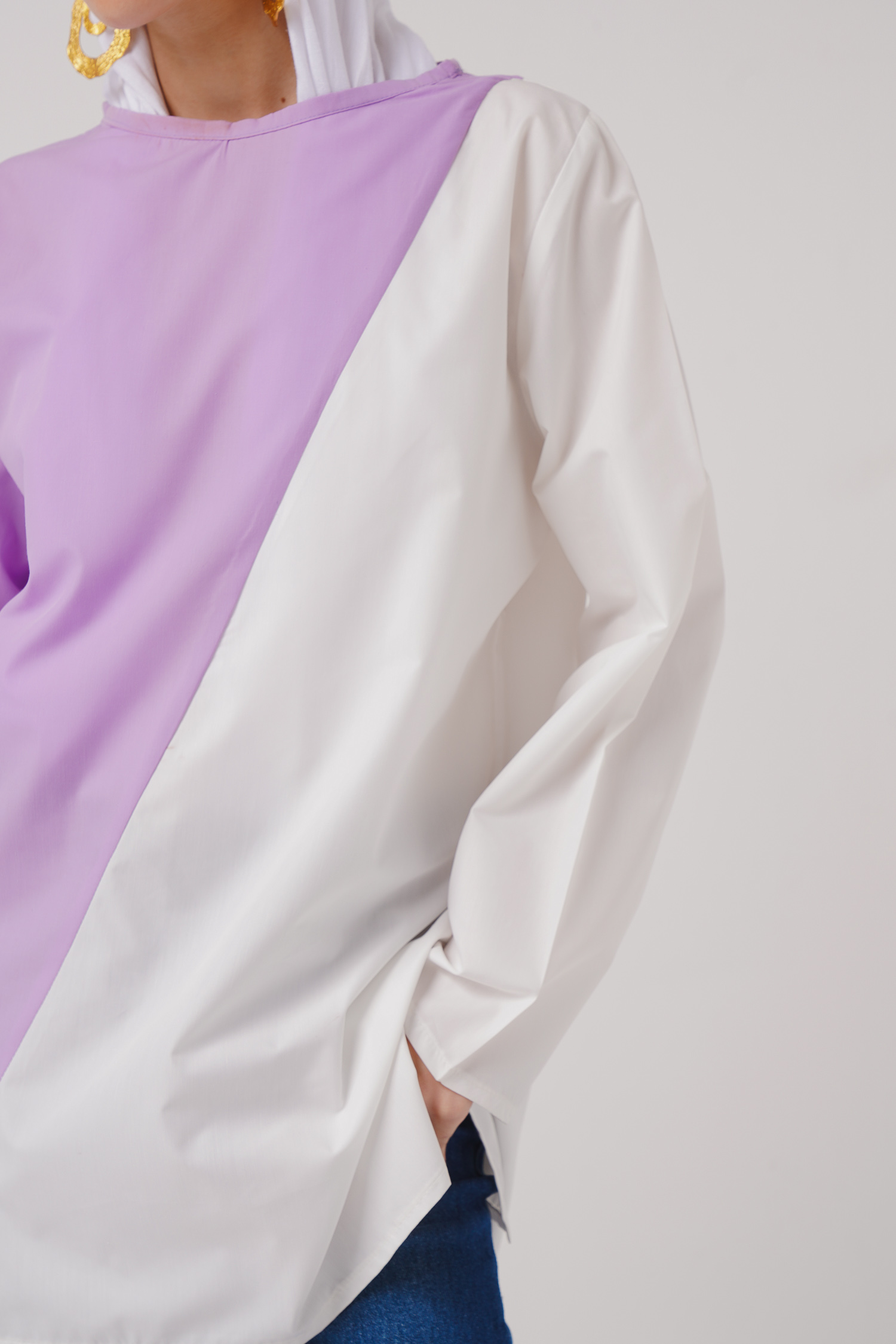Two-Color Plain Cotton Blouse