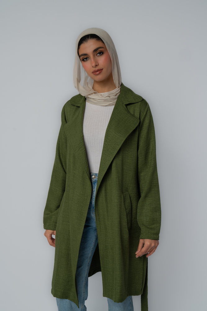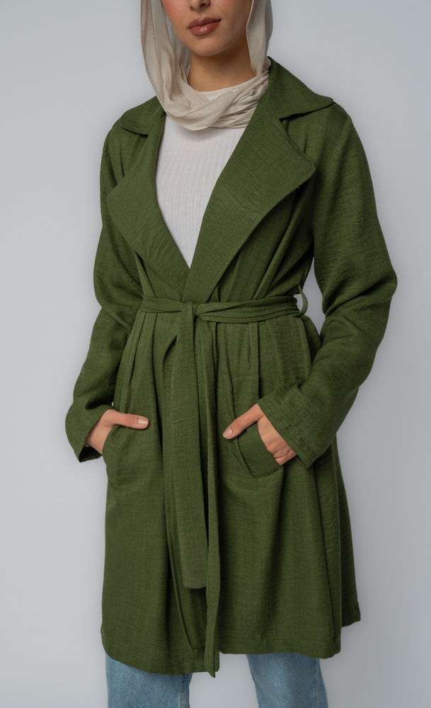 Linen-Blend Tie-Belt Jacket